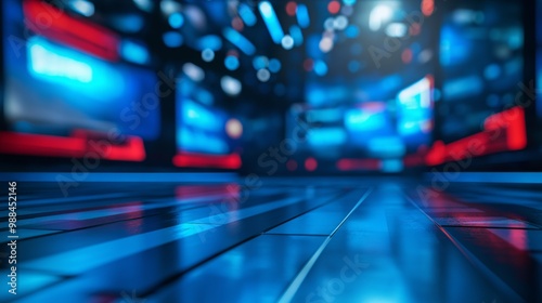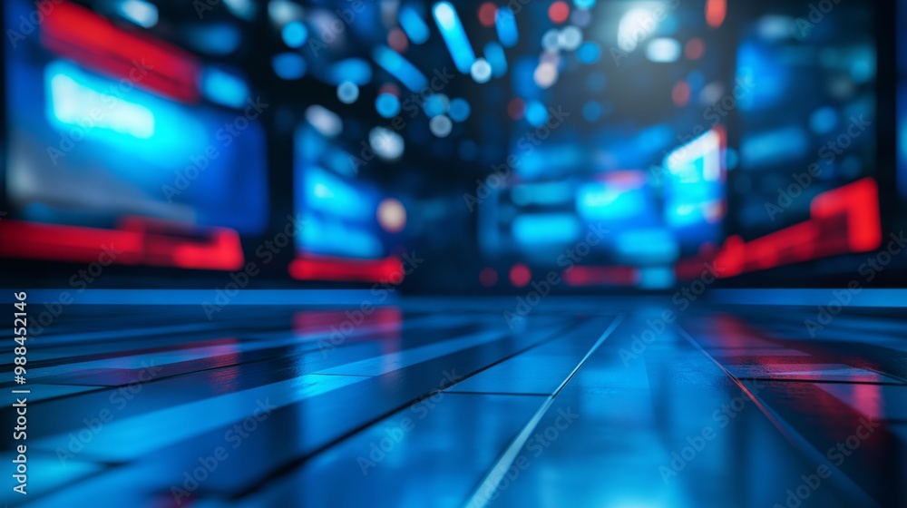 Wall mural : Red blue abstract background broadcasting studio with gradient light gradient glow background