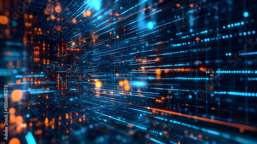 Wall mural red blue digital background technology technological operations neural networks ai big data transmis