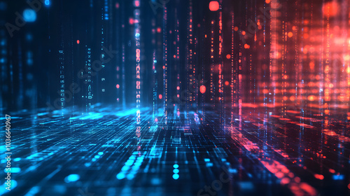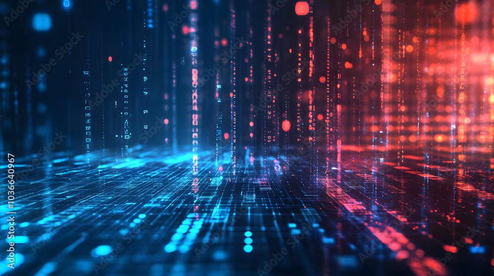 Wall mural red blue digital background technology technological operations neural networks ai big data transmis