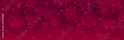 Wall mural : Red christmas banner with snowflakes - merry christmas and happy new year greeting banner - horizontal