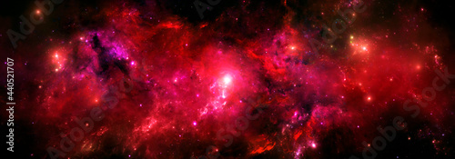 Wall mural red colorful nebula in deep space with the glitter of stars - Wall murals Wall mural red colorful nebula in deep space with the glitter of stars - Wall murals