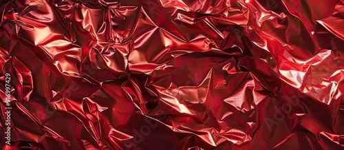 The watermark will not be included on Wall mural.: Red crumpled foil background under the light with copy space image