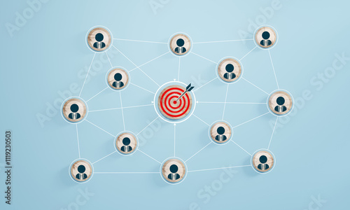 The watermark will not be included on Wall mural.: Red dartboard and red arrow connection linkage with human icon for customer focus target group and c