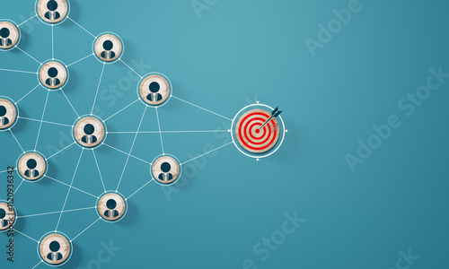 Wall mural : Red dartboard and red arrow connection linkage with human icon for customer focus target group and c