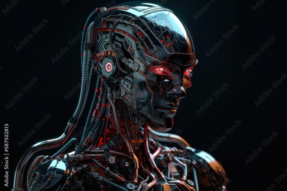 The watermark will not be included on Wall mural.: Red female mechanical robot with copyspace generative ai