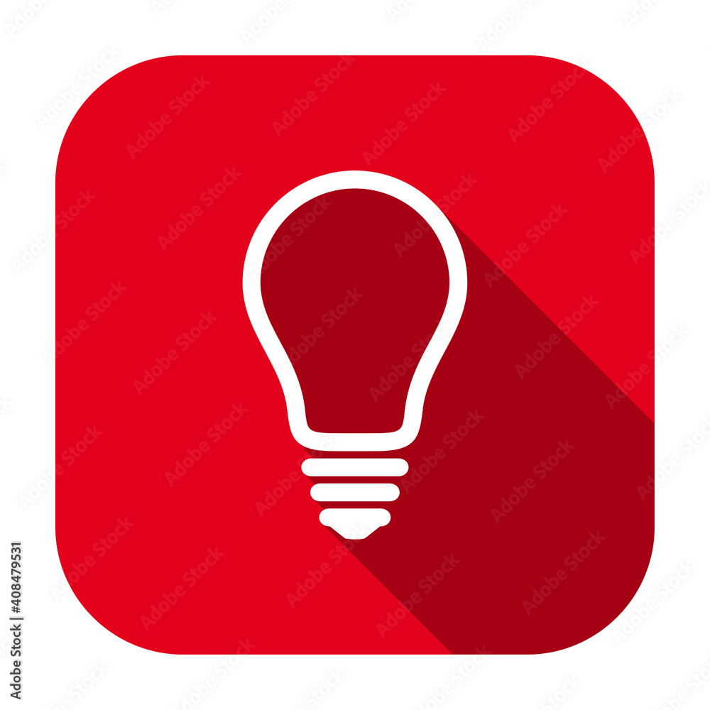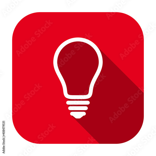 Red flat rounded square light bulb line icon, button with long shadow isolated on a white backgroundWall mural