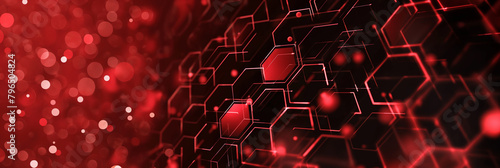The watermark will not be included on Wall mural.: Red futuristic technology interface with hexagons and blurred bokeh