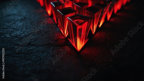 Wall mural red glowing triangles abstract in black background copy space design - Wall murals Wall mural red glowing triangles abstract in black background copy space design - Wall murals