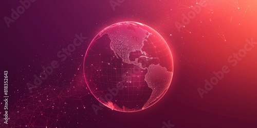 Wall mural red gradient background, digital globe vector illustration of planet earth made of dots and lines in