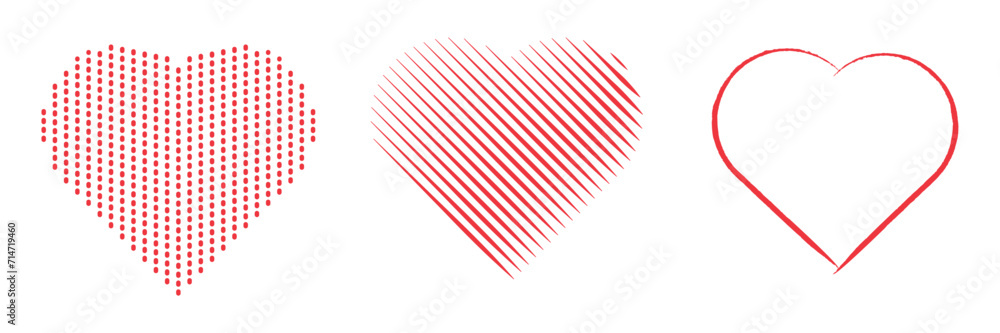 Wall mural red heart shape icons set . love symbol on transparent background. pattern and brush drawn shape vec