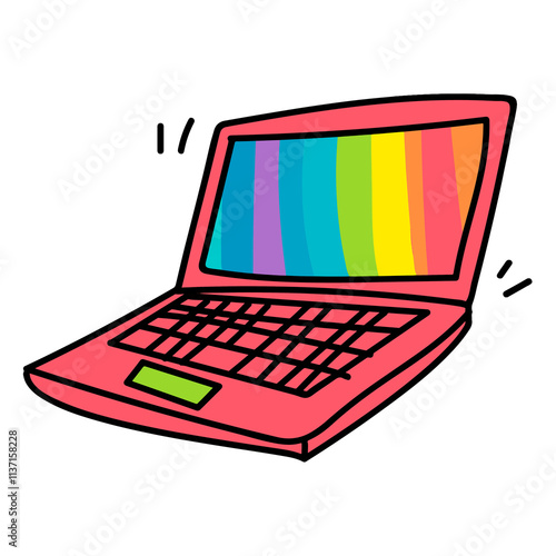 The watermark will not be included on Wall mural.: Red laptop sticker with a white border design element