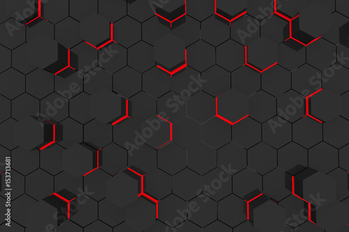 Wall mural : Red light abstract background in black hexagons geometric in 3d rendering