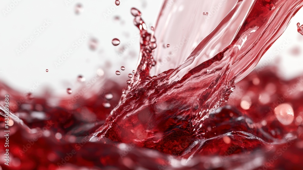 The watermark will not be included on Wall mural.: Red liquid splashing, close-up view showing texture and movement -