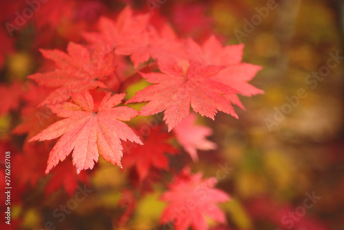 Red maple leaves border at autumn forest, blurred background - season changing - a tree branch of maplWall mural