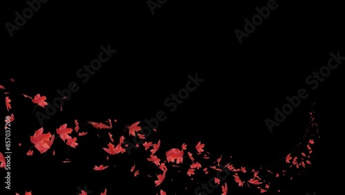 Wall mural red maple leaves flow trail on alpha channel. red maple leaves flow curve swirl on alpha channel.