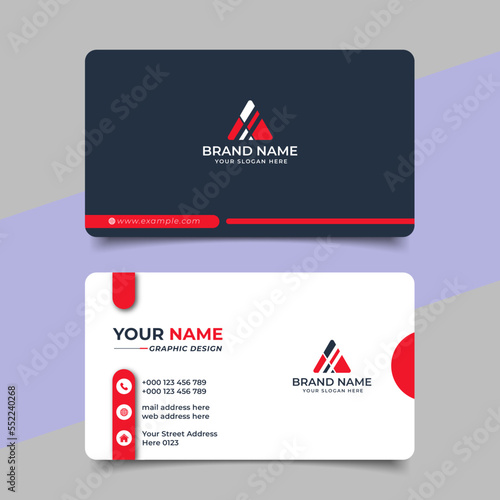 The watermark will not be included on Wall mural.: Red modern creative business card and name card horizontal simple clean template vector design