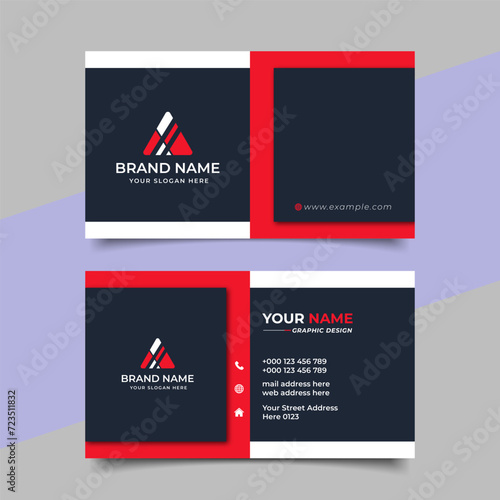 The watermark will not be included on Wall mural.: Red modern creative business card and name card horizontal simple clean template vector design
