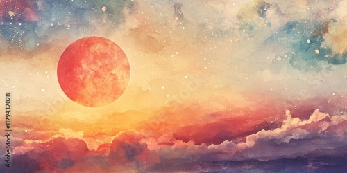 The watermark will not be included on Wall mural.: Red moon in cloudy sky