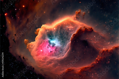 The watermark will not be included on Wall mural.: Red nebula with stars - fantasy galaxy generative ai background