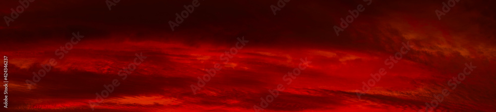 The watermark will not be included on Wall mural.: Red orange sunset background - dramatic sky with clouds - abstract red background with copy space for