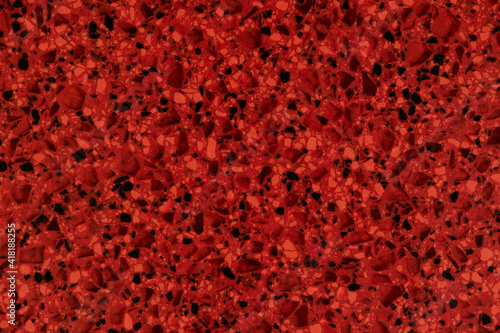 Red pattern of artificial textured stone of tabletop for background - close up top view - Wall mural