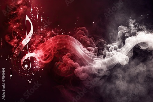 Wall mural red smoke with music notes and shiny glitter particles abstract background, ai