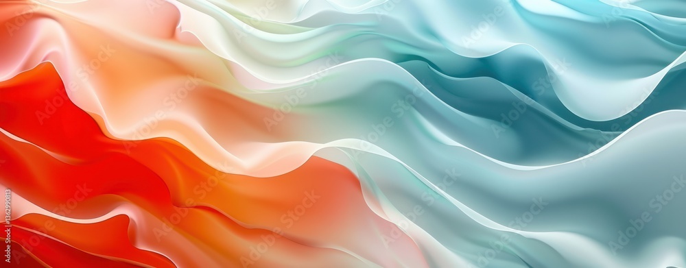 The watermark will not be included on Wall mural.: Red soft blue green gradients abstract background swirl curve wave fabric dynamic for presentation s