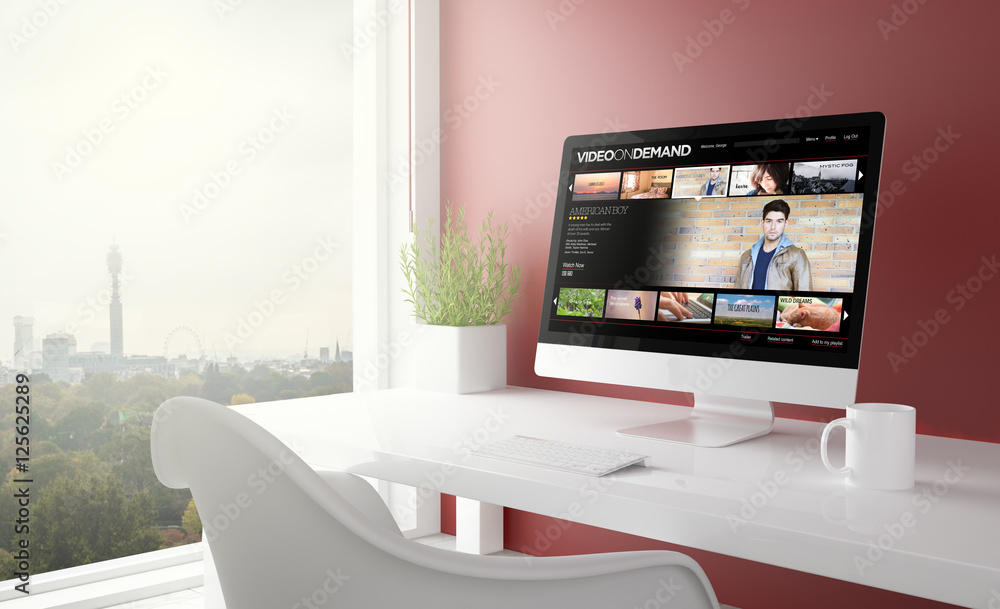 Wall mural red studio with video on demand computer - Wall murals Wall mural red studio with video on demand computer - Wall murals