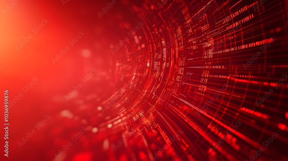 Wall mural red technology background and abstract digital tech circle.copy space.