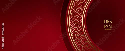 Wall mural : Red texture illustration with round frame element with golden color pattern