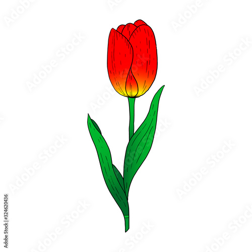 The watermark will not be included on Wall mural.: Red tulip hand drawn drawing - stylized image of a tulip flower - one tulip isolated on a white backgrou