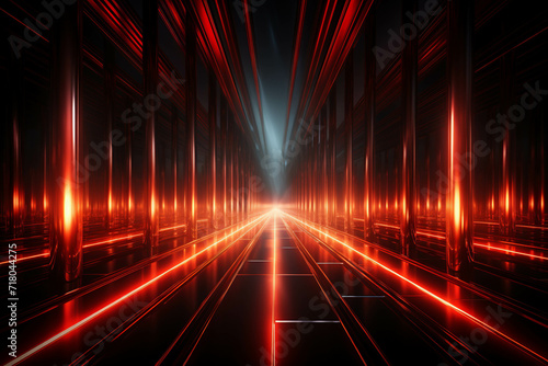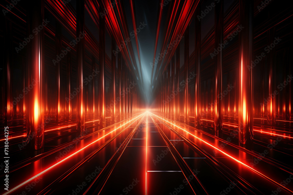 Wall mural red wave energy flow abstract design with light lines and fractal motion.