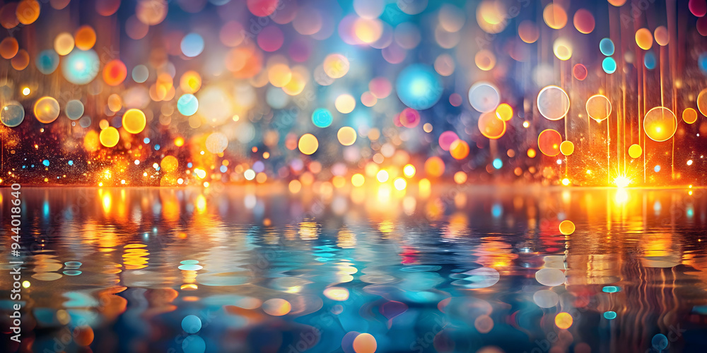 The watermark will not be included on Wall mural.: Reflected rainbow lights: a mesmerizing abstract of colorful bokeh lights reflected on a wet surface