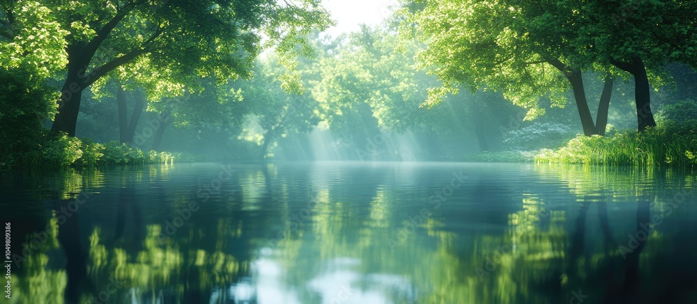 Wall mural reflection of trees on the water. with copy space image. place for adding text or design - Wall murals Wall mural reflection of trees on the water. with copy space image. place for adding text or design - Wall murals