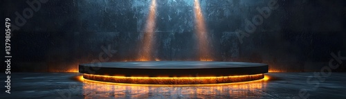 Wall mural reflective metallic podium in a futuristic industrial setting - Wall murals Wall mural reflective metallic podium in a futuristic industrial setting - Wall murals