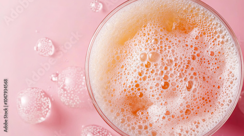 Wall mural refreshing iced cream soda with foam and bubbles, perfect for summer enjoyment. vibrant colors and f