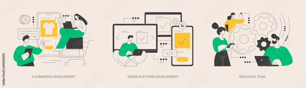 The watermark will not be included on Wall mural.: Remote developers team abstract concept vector illustrations -