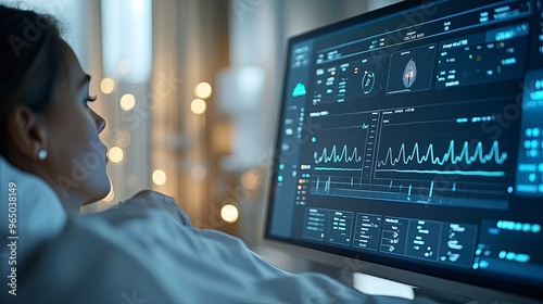 Wall mural : Remote patient monitoring system, with sensors attached to a patient, data displayed on a screen, br