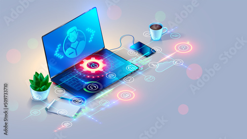 Wall mural : Remote support online - remotely access and control of computer or laptop via web internet connection