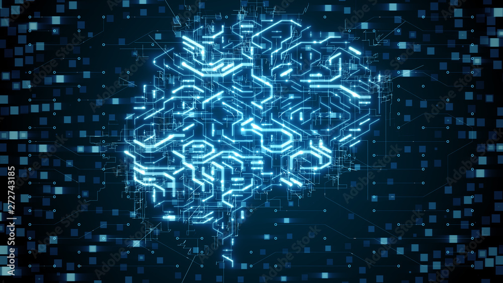 The watermark will not be included on Wall mural.: Render of a brain circuit board of an ai, artificial intelligence machine with fast electronic infor