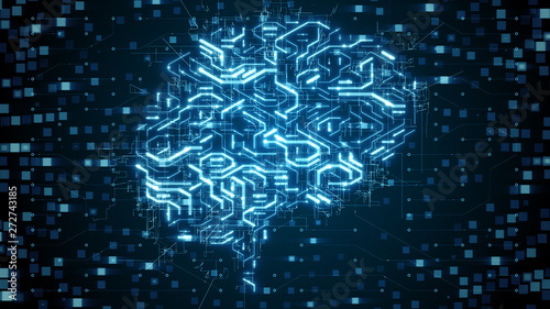 Wall mural : Render of a brain circuit board of an ai, artificial intelligence machine with fast electronic infor
