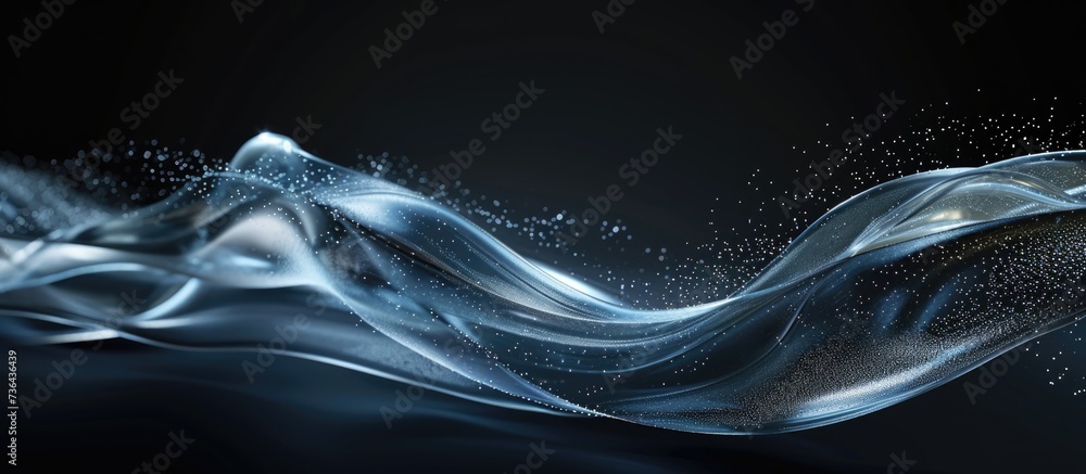 Wall mural render of a dark background with a 3d generated abstract glass wave.
