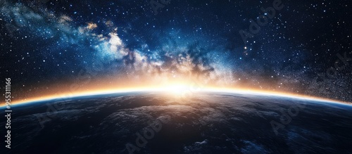 Wall mural rendering of a landscape featuring the milky way galaxy in a 3d cartoon style showcasing an earth vi - Wall murals Wall mural rendering of a landscape featuring the milky way galaxy in a 3d cartoon style showcasing an earth vi - Wall murals