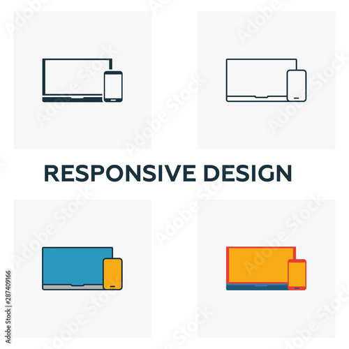 Wall mural responsive design icon set. four elements in diferent styles from design ui and ux icons collection.