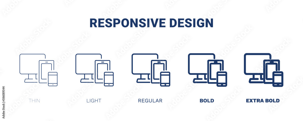 Wall mural responsive design icons. thin, light, regular, bold, black responsive design, development icon set f