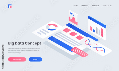 Responsive poster or landing page with infographic multiple website screen for big data concept baseWall mural