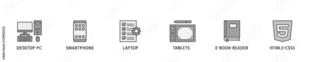 Wall mural responsive web design banner web icon illustration concept with icon of tablets, html5 css3, e book  - Wall murals Wall mural responsive web design banner web icon illustration concept with icon of tablets, html5 css3, e book - Wall murals
