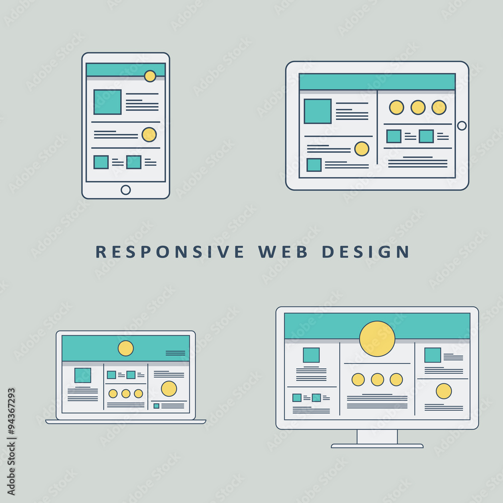 Wall mural responsive web design mockup template vector background. smartphone, tablet, computer website layout - Wall murals Wall mural responsive web design mockup template vector background. smartphone, tablet, computer website layout - Wall murals