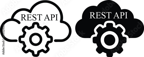 The watermark will not be included on Wall mural.: Rest api outline and flat icon vector set, digital algorithm code symbol of technology software prog