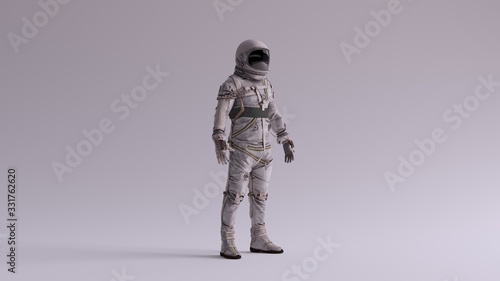 Wall mural : Retro astronaut with black visor and silver white spacesuit with light grey background with neutral